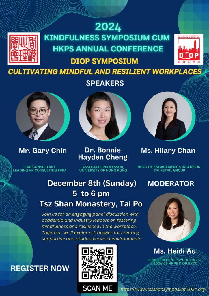 Division of Industrial-Organizational Psychology (DIOP) is organising a symposium on cultivating mindful and resilient workplaces in the upcoming Kindfulness Symposium cum Annual Conference of The Hong Kong Psychological Society on 8 Dec (Sun).